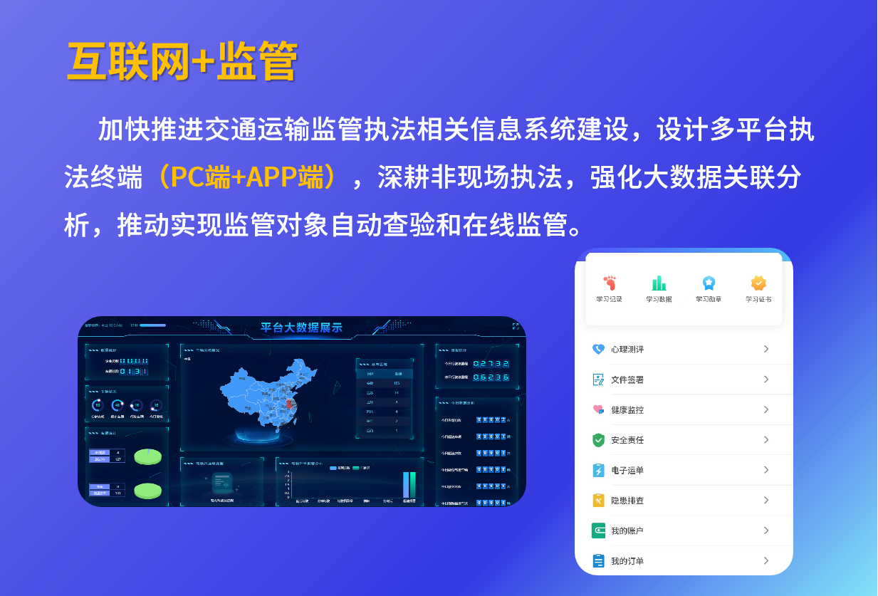 系统兼容公共交通、海事、公路、码头、道路旅客运输、客(货)运站场、危险(普通)货物运输等业务领域。创新完善监管方式,全面提升监管能效。实现企业大数据分类统计与协同管理。打造部级、省级、市级、县级四级监管平台,逐级管理,数据交互运行,完善《交通运输部双随机抽查事项清单》,动态完成抽查事项清单,避免重复检查,减轻负担。